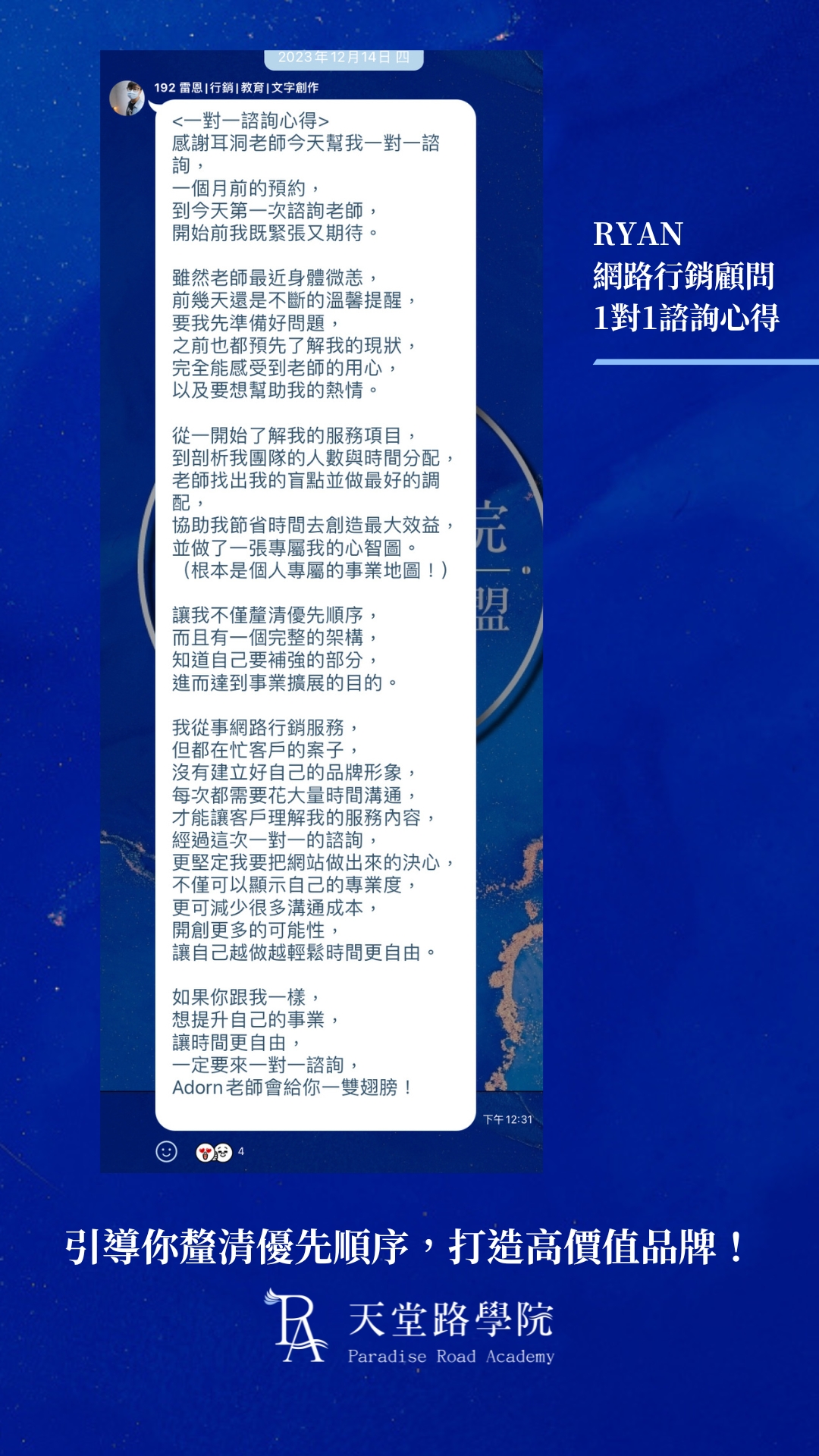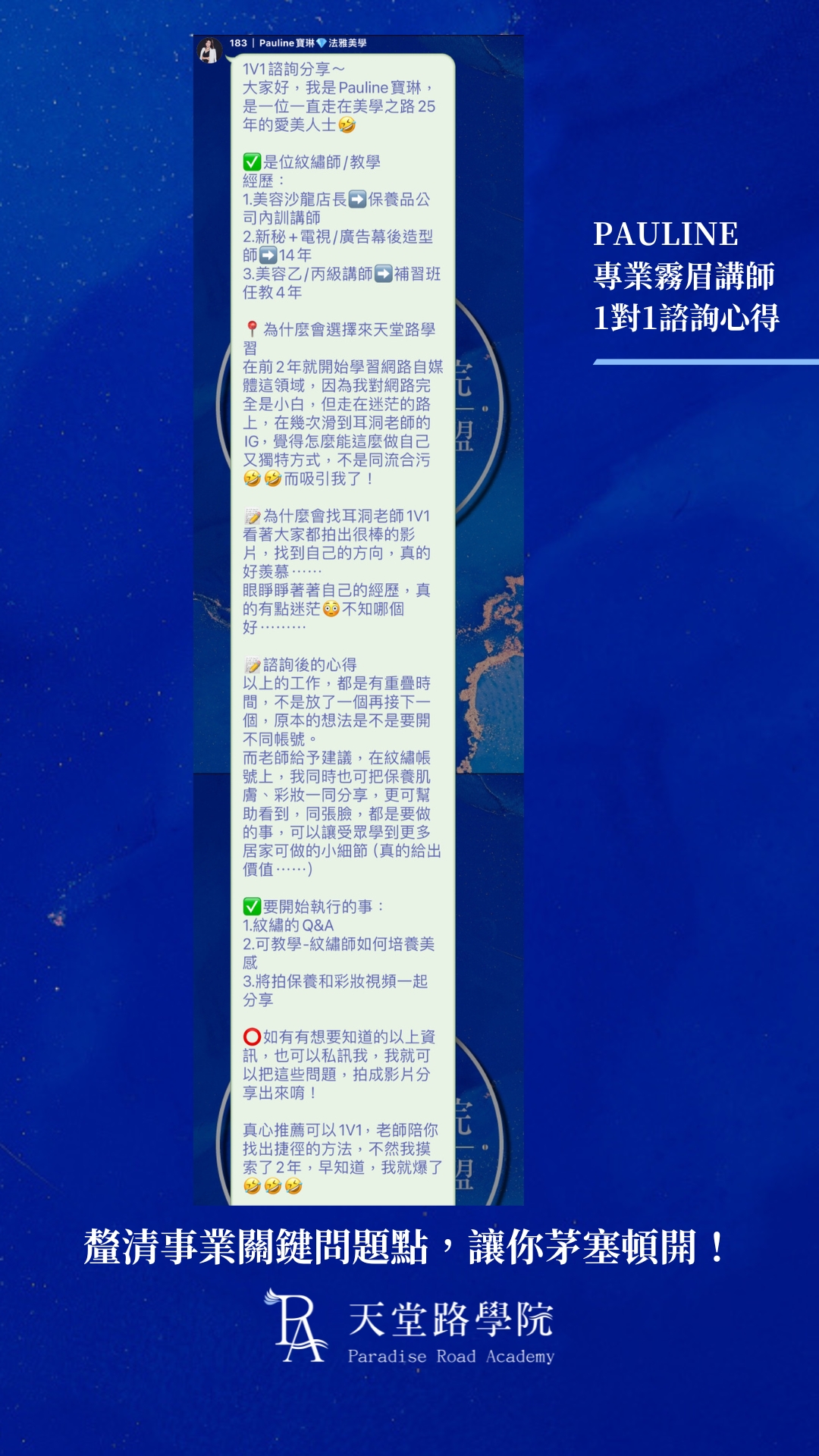 我是誰,用數字的方式具體寫出我做過哪些事,為什麼我做的這些專業,讓我有資格開這個服務方案,為什麼我值得你信賴